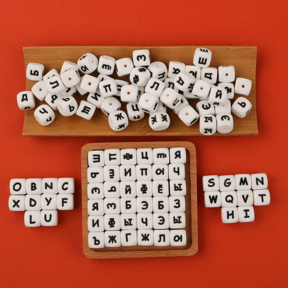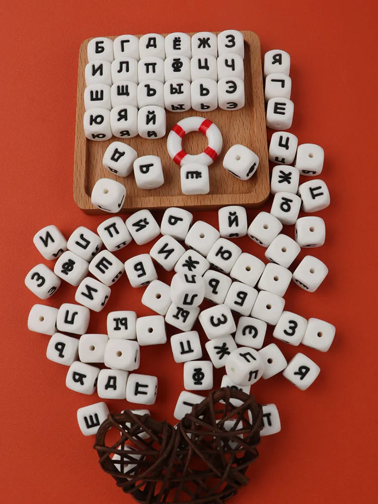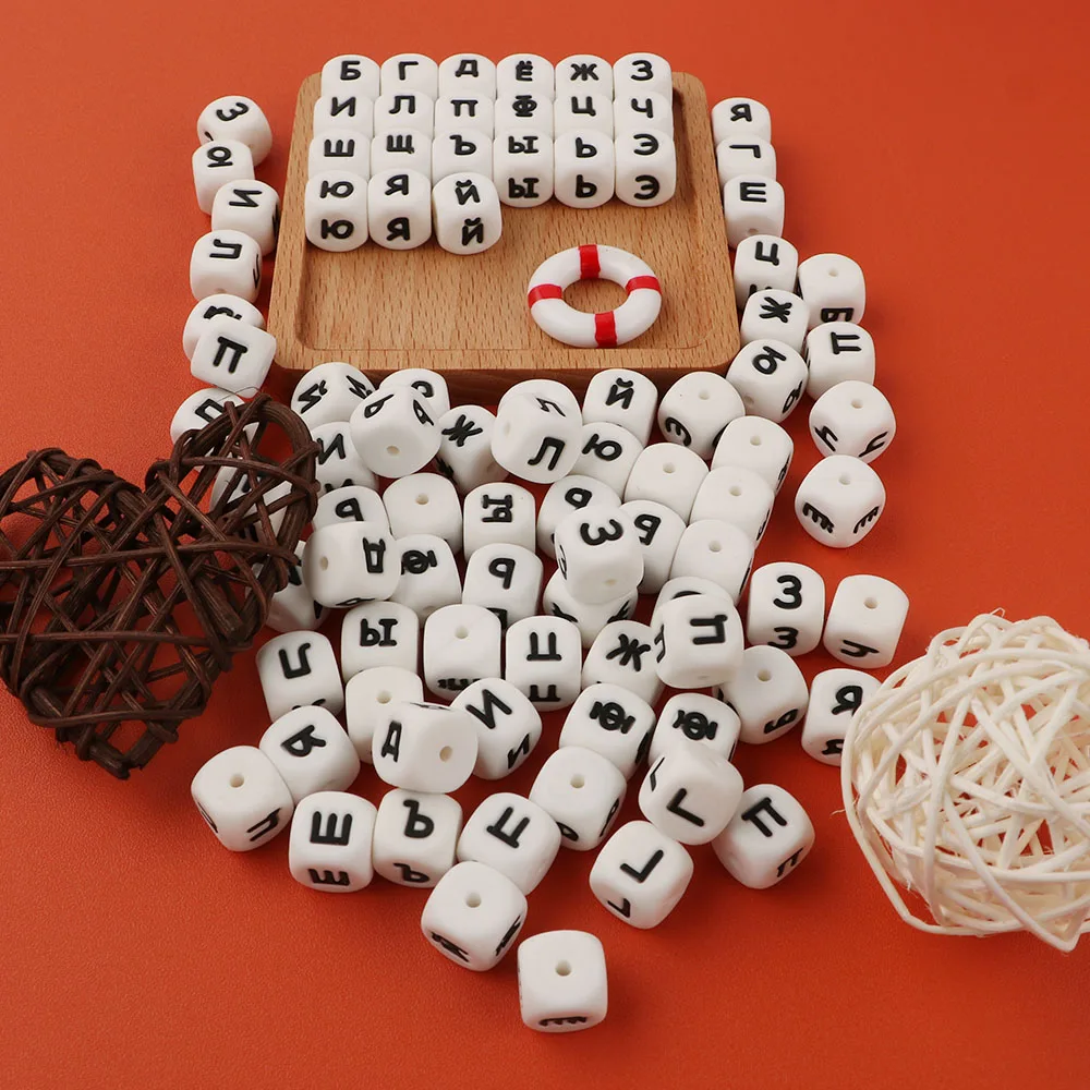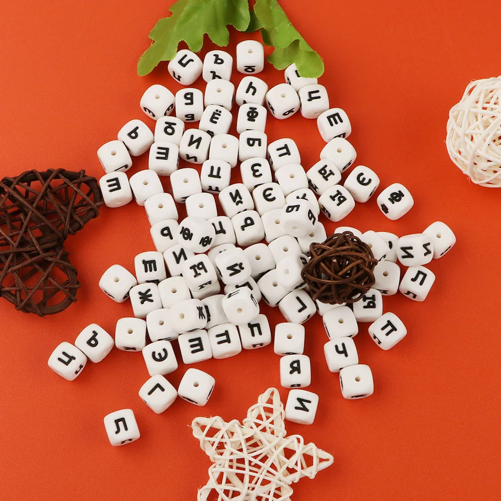 100 шт., силиконовые бусины с русскими буквами, 12 мм