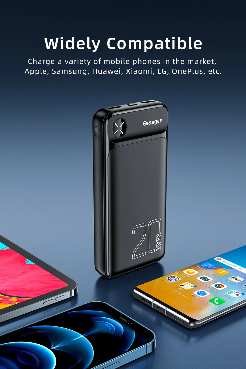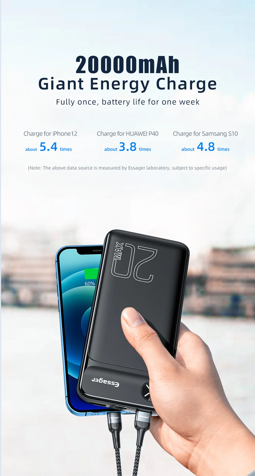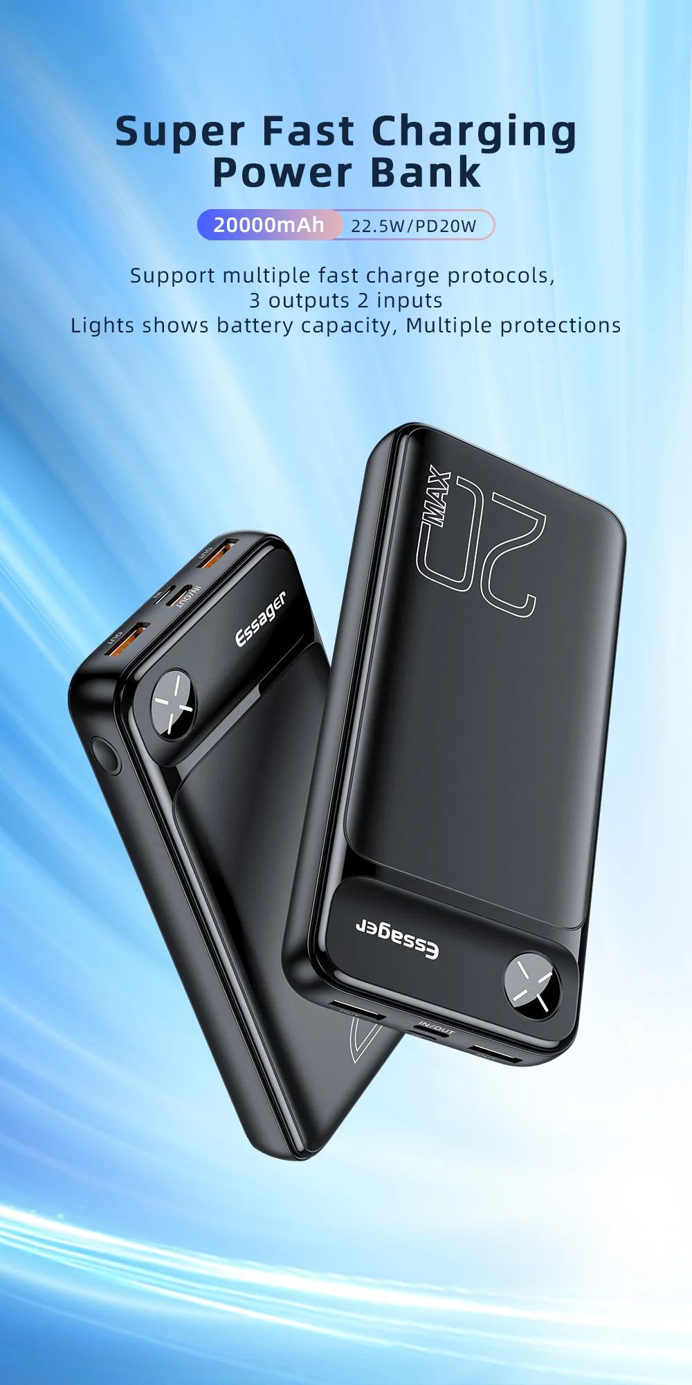 Внешний аккумулятор Essager на 20 Вт с поддержкой быстрой зарядки, 20000 мАч