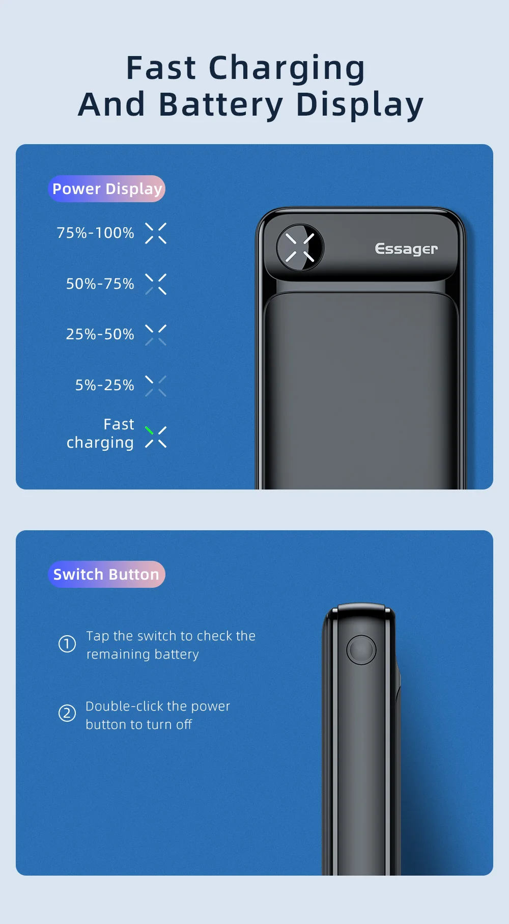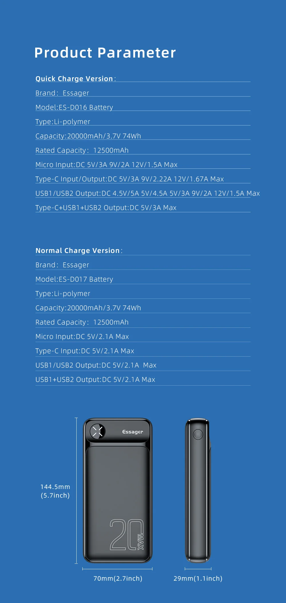 Я купил внешний аккумулятор Essager 20000 мАч, внешний аккумулятор 20000 мАч, портативное зарядное устройство PD 20 Вт для iPhone Poverbank. Есть две разные модели. Медленная и быстрая зарядка. Выберите правильную версию.