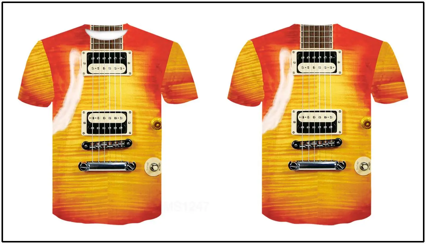 Новая мужская модная футболка с 3D-принтом гитары, с короткими рука...