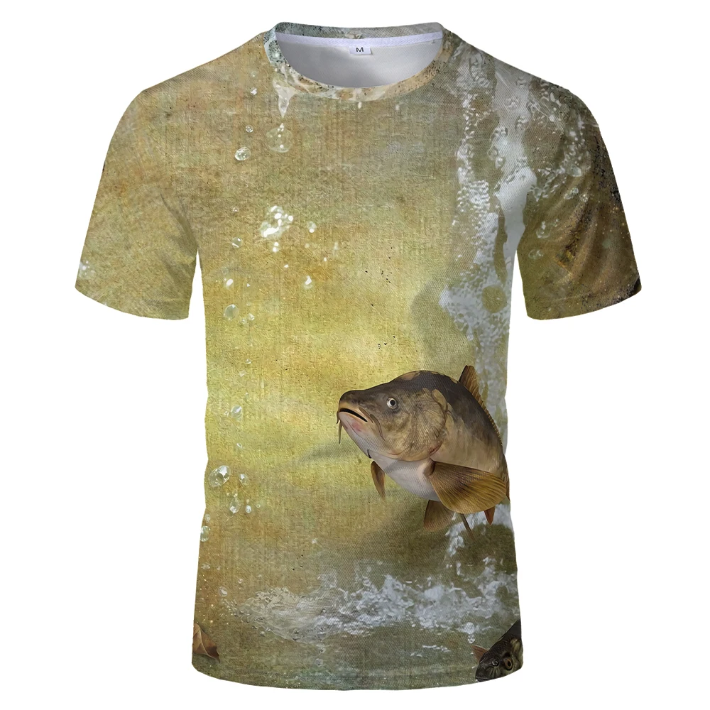 Новинка 2021, Забавные футболки с 3D-принтом рыбалки, летняя повседневная Уличная крутая футболка с графическим рисунком, модная мужская футболка с короткими рукавами