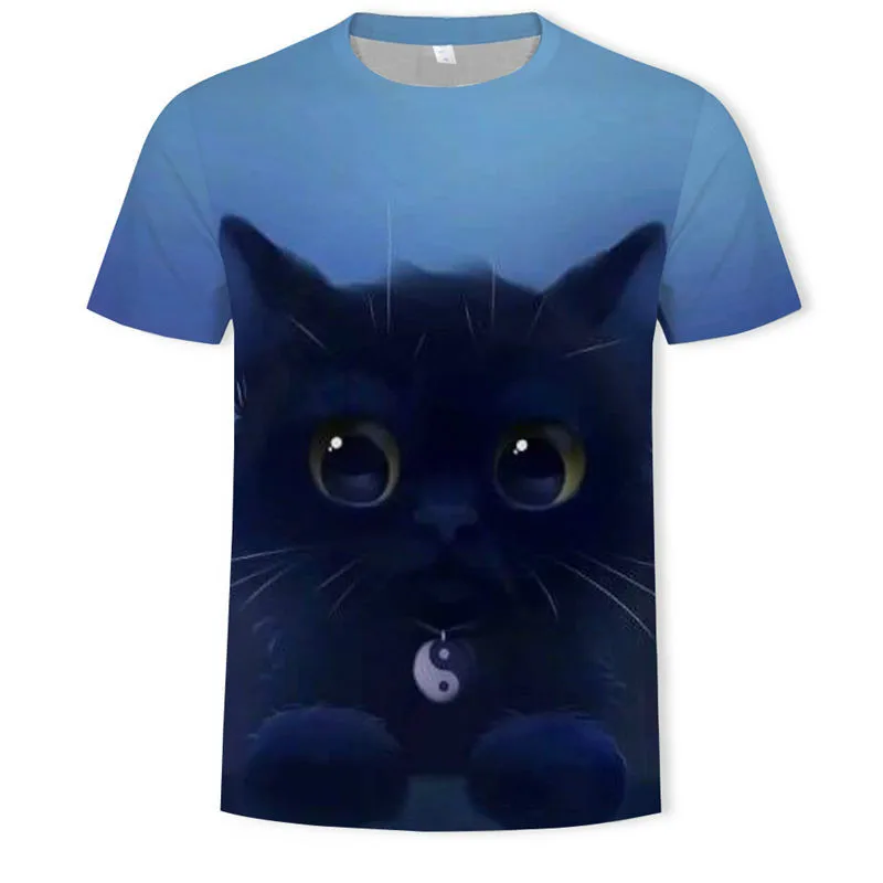 Летняя женская футболка, футболки с 3D-принтом милого кота, черная ...