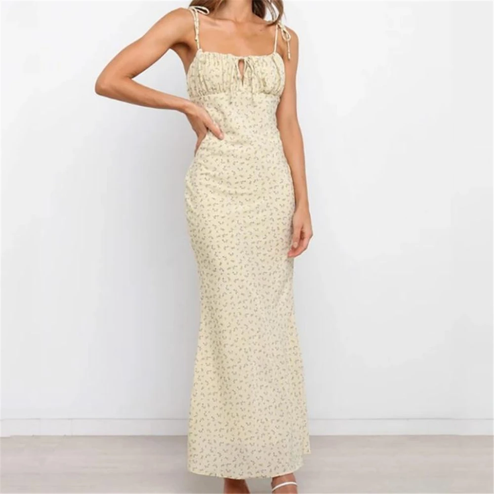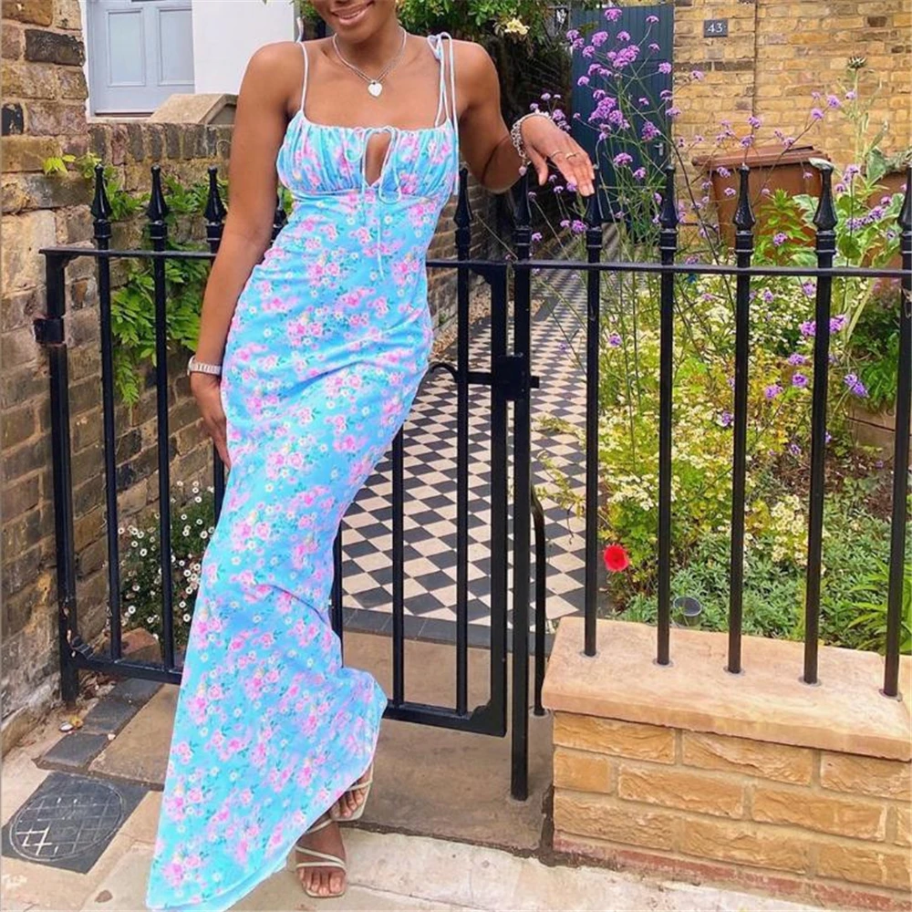 Цветочный принт Cottagecore элегантное платье-макси без рукавов для женщин пикантные туфли с низким вырезом на спине вечерние Клубные с завязкой спереди платье Vestidos Verano 2021