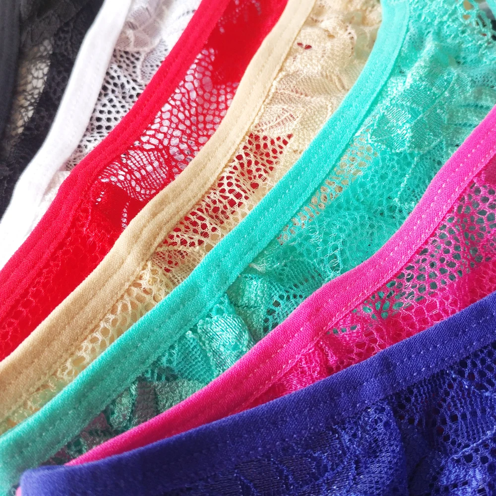 5 шт.лот бандажные женские кружевные стринги, трусики, хлопковые тр...
