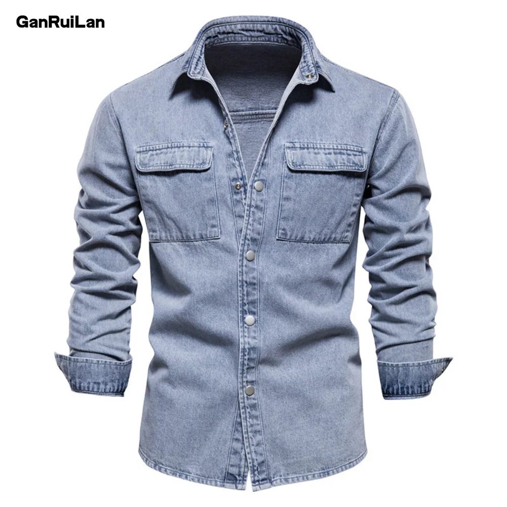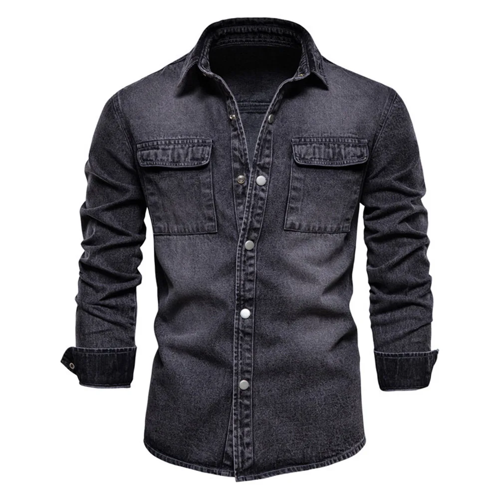Новая хлопковая джинсовая куртка, Мужская Повседневная однотонная тонкая куртка с карманами для мужчин, стильная Весенняя Высококачественная Мужская одежда B0977