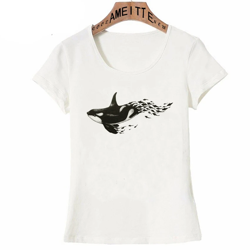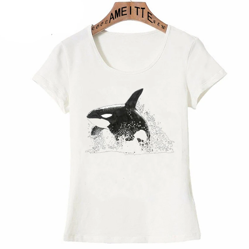 Женские винтажные футболки Orcinus, повседневные футболки с принтом орки, оригинальный дизайн Кита, с коротким рукавом, забавные белые топы для девушек