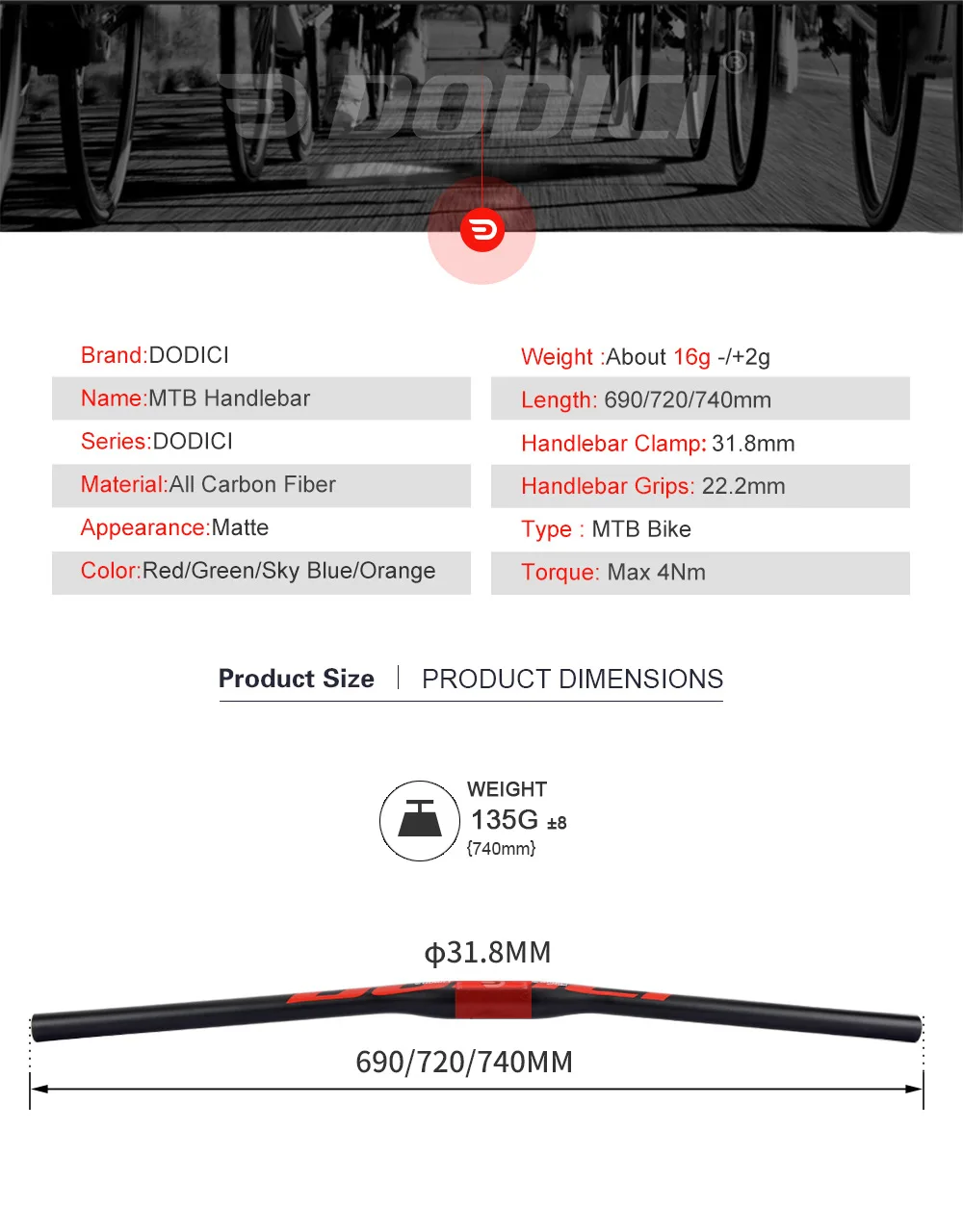 Руль велосипедный прямой из углеродного волокна, 31,8690720740 мм