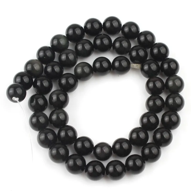 Имя:Бусины из натурального камня 4/6/8/10/12 мм, черный обсидиан, свободные бусины для браслетов на удачу, изготовление ювелирных изделий своими руками, нить 15 дюймов