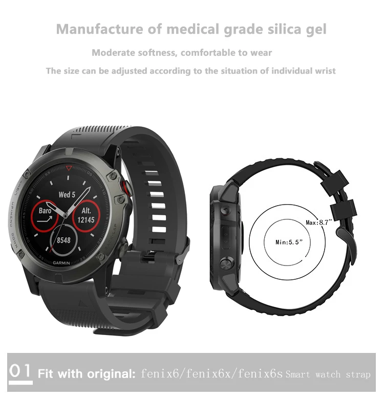 Feature 1:For Garmin Fenix 6X 6 6S Wrist Strap