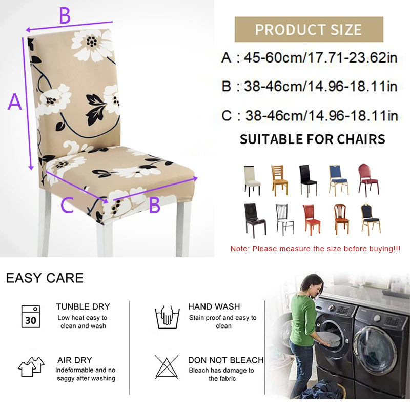 Чехол для стула, из спандекса, с принтом, легко моющийся