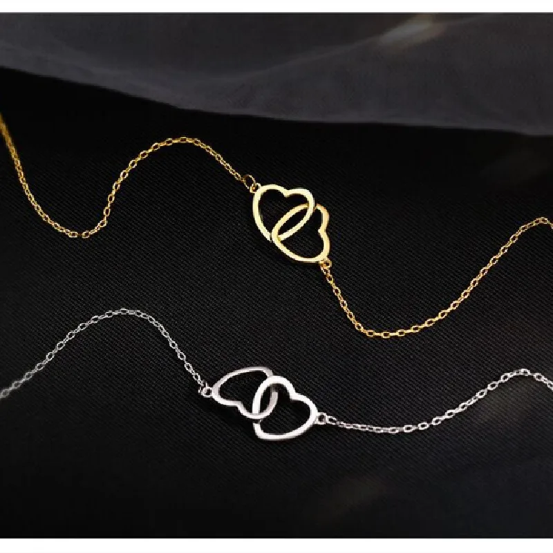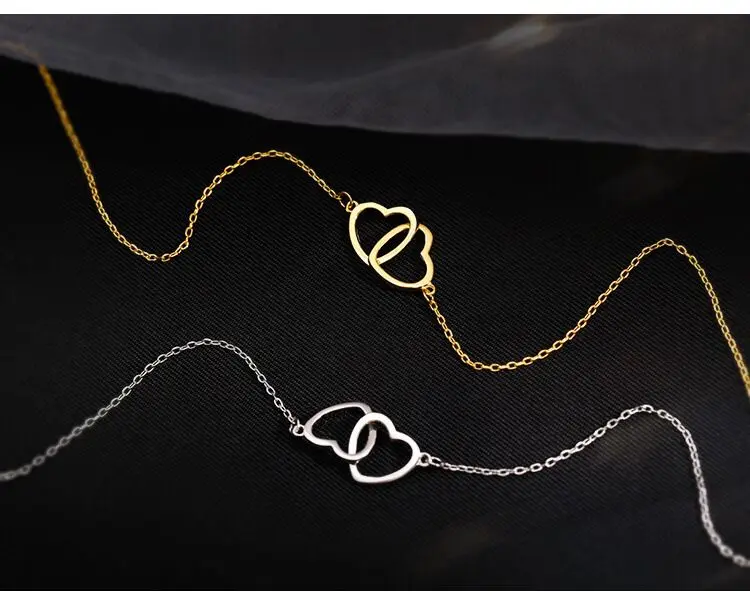 Ожерелье с двойным геометрическим сердцем золотого и серебряного цвета, простая ажурная цепочка с любовью, Женская цепочка до ключиц, свадебное ювелирное изделие, Подарочный чокер