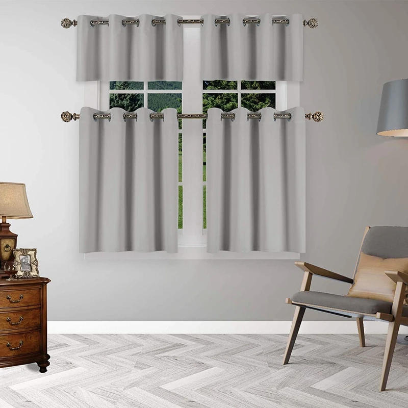Затемненные Короткие шторы для гостиной, спальни, серого цвета, оконные шторы, маленькие кухонные шторы, домашнее украшение для штор