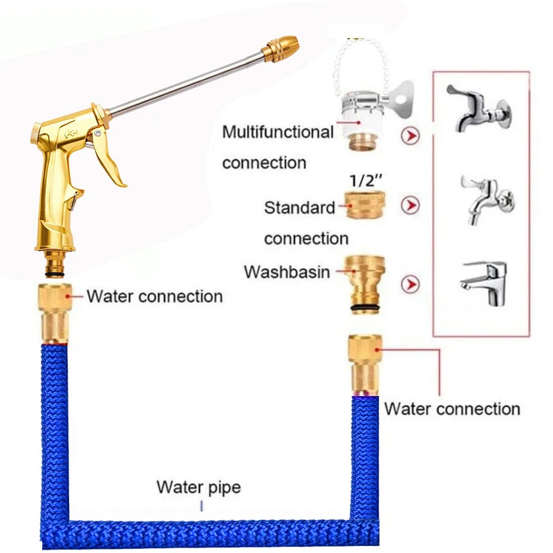 Гибкий и выдвижной садовый шланг, удобный шланг для мойки высокого давления с распылителем