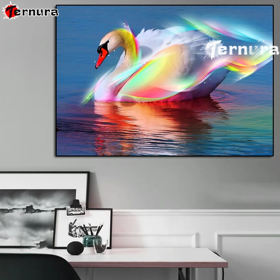 5d алмазная живопись сделай сам, Цветная Мозаика в виде лебедя, алмазная живопись, полноразмерная круглая Алмазная вышивка, искусство, вышивка крестиком, Декор