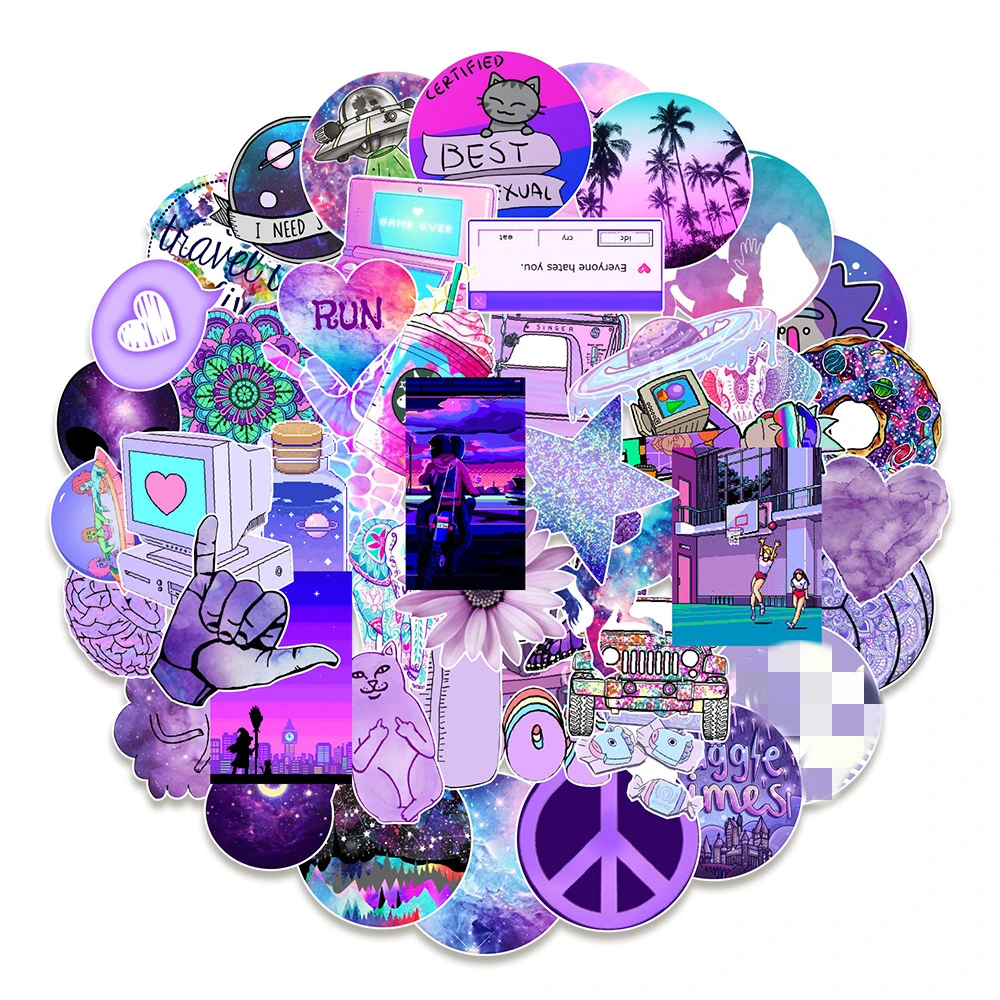 53 шт. VSCO блестящие фиолетовые граффити детские канцелярские наклейки для скейтборда автомобиля ноутбука мотоцикла ноутбука детские игрушки в подарок