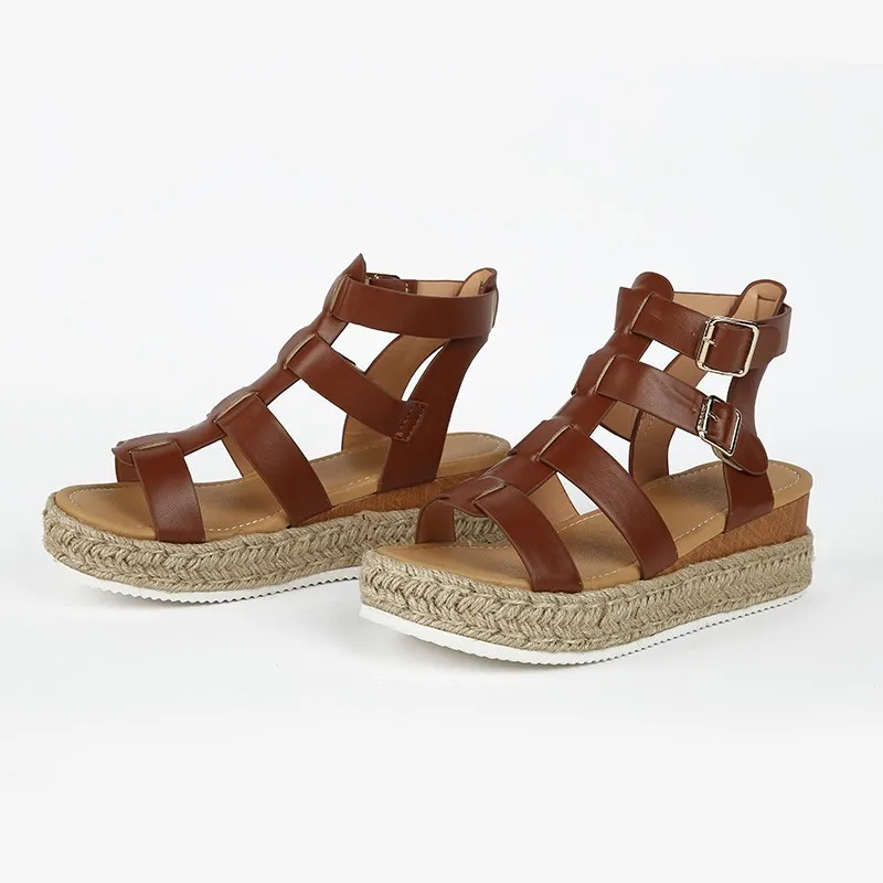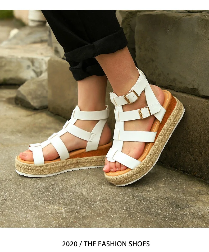 Женские сандалии в римском стиле, босоножки на танкетке, туфли с пр...