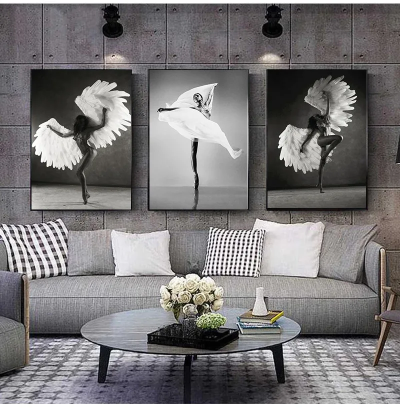 Современная мода Танцующая балерина Холст Картина Виктория Секрет Ангелы Крылья девушка плакат изящная танцевальная картина домашний декор