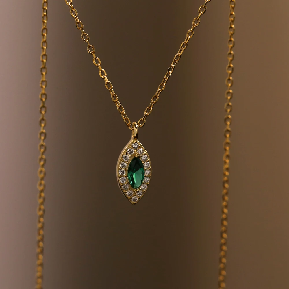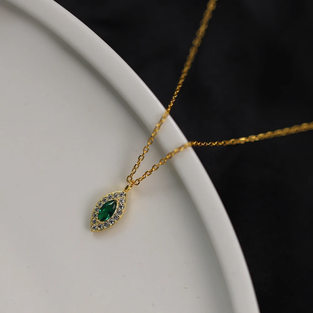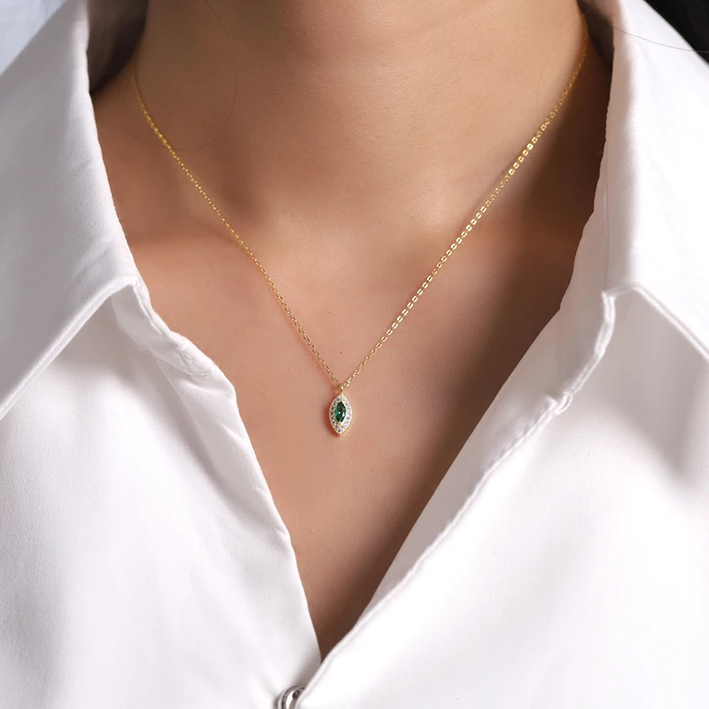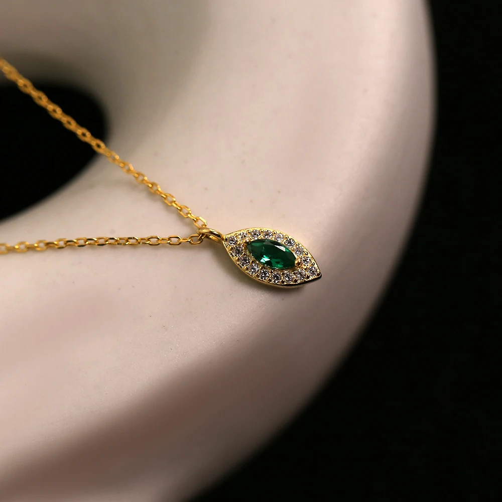 Ожерелье из серебра 925 пробы с простым Европейским ПАВЕ, кулон с зеленым сглаза, цепочка до ключиц, женское классическое свадебное украшение