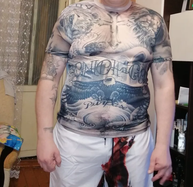 Мужская футболка sSleeve, летняя футболка с 3D татуировкой для фитн...