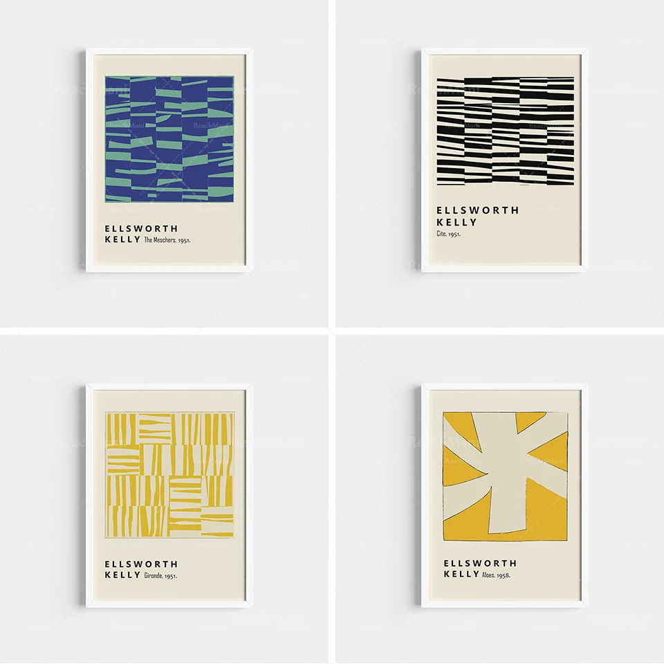 Эллсворт Келли арт, принты в стиле вдохновения середины века, плакаты Bauhaus, набор богемный постер.