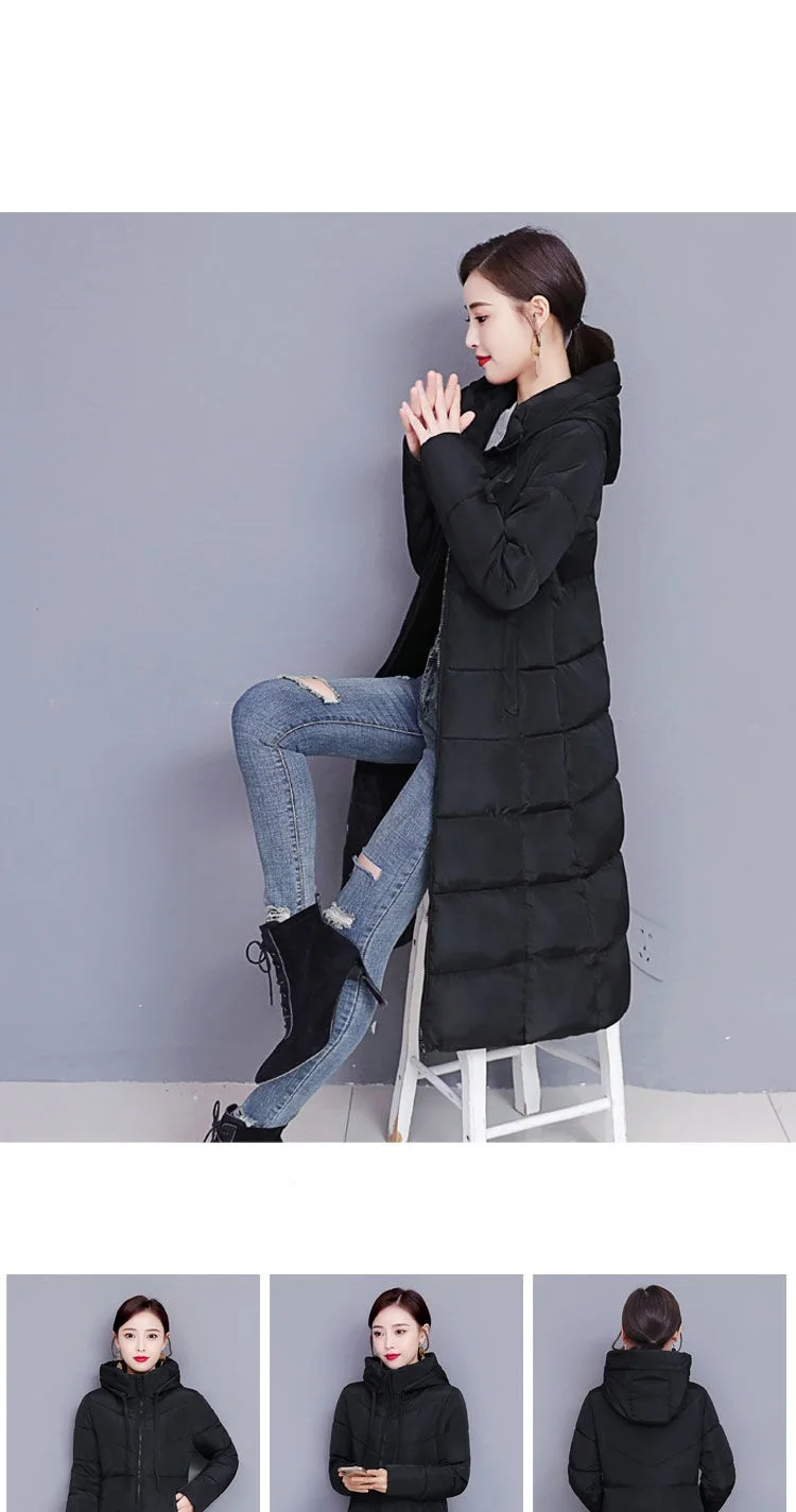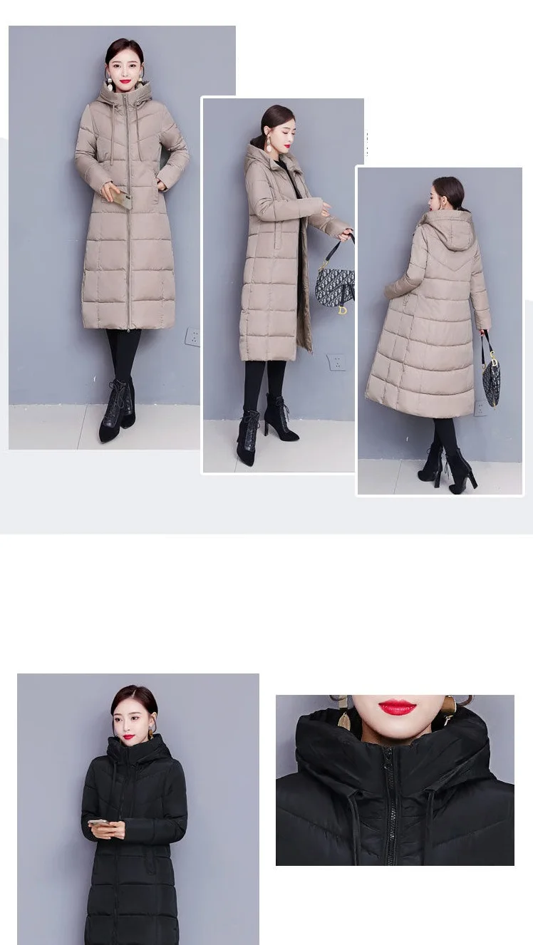 Зимняя женская модная утепленная длинная куртка и пальто с капюшоно...