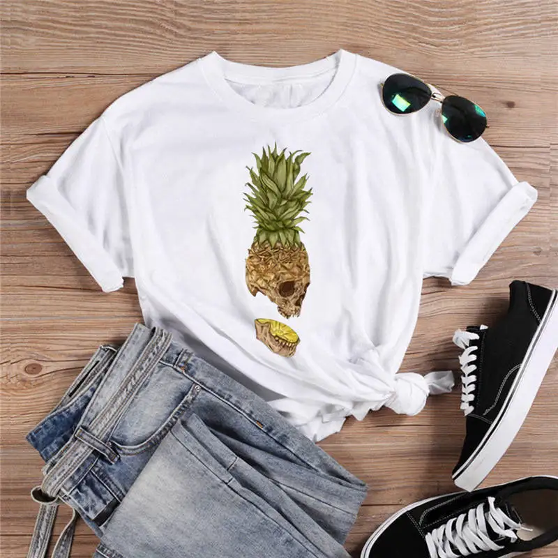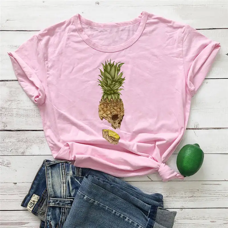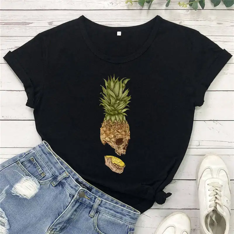 Женская футболка с принтом в виде черепа и ананаса, модная футболка с надписью и цветочным принтом, хипстерская Мягкая Повседневная футболка с коротким рукавом, забавная футболка