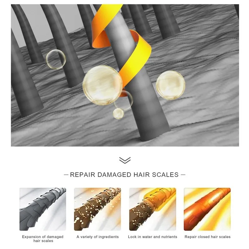 1. Глубокое увлажнение, шелковистость и гладкость 2. Питают волосы, разглаживают вьющиеся, делают волосы мягкими и блестящими. 3. Глубоко увлажняет и питает волосы, помогает восстанавливать поврежденные волосы 4. Вес нетто: 30 мл 5. Применимый Тип волос: подходит для различных типов волос.