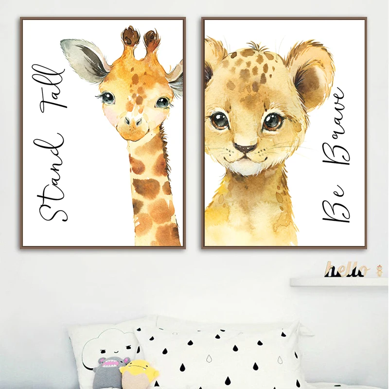 Скандинавское искусство акварельные животные постер настенное Искусство Слон Лев Жираф Печать холст картина для детской комнаты детская настенная роспись