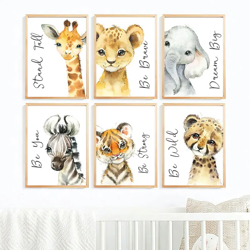 Детская комната животные настенные плакаты Decorativo слон настенны...