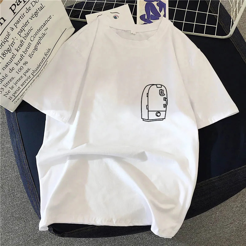 Милая женская футболка с графическим принтом холодильника Ulzzang Harajuku, Повседневная Белая Летняя футболка с круглым вырезом для девушек, женская футболка
