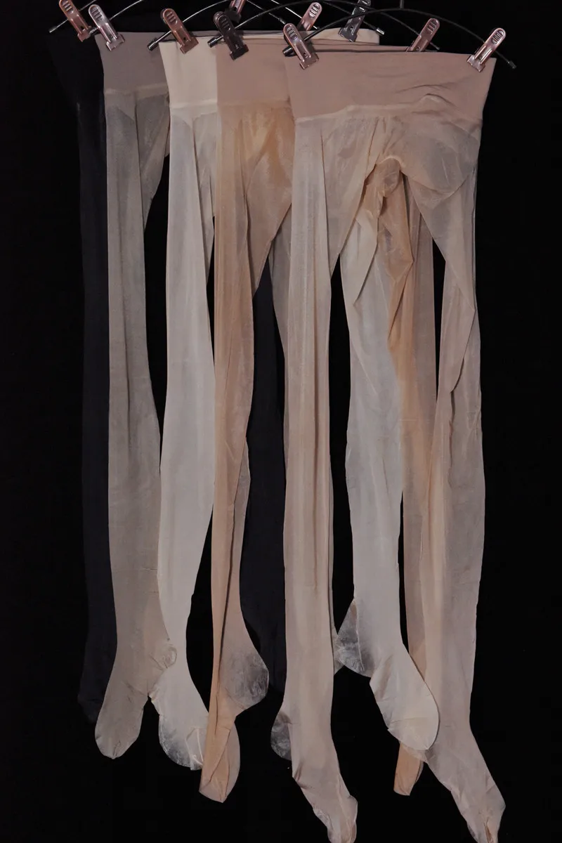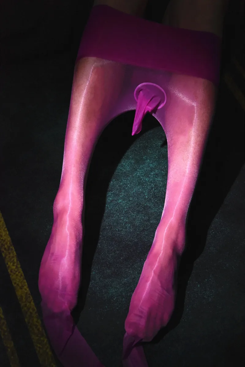 Сексуальные мужские чулки супер блестящие глянцевые 360 бесшовные 1D ультратонкие Penile оболочка женские и мужские открытые промежности эластичные колготки для похудения