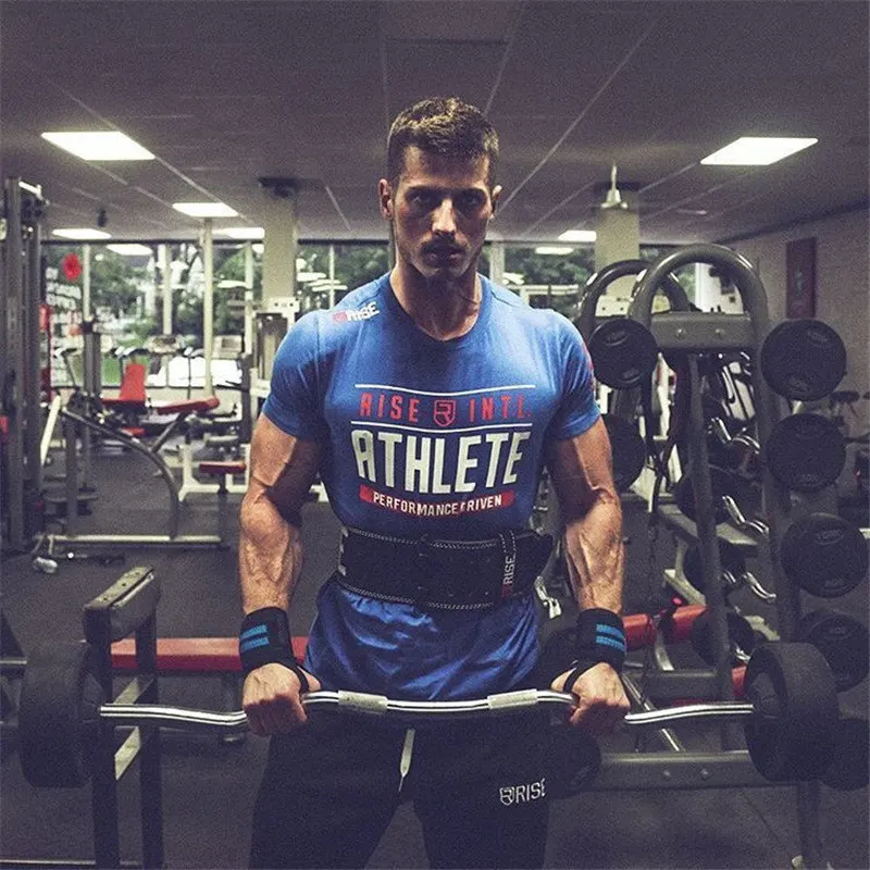 Летняя Мужская хлопковая футболка с коротким рукавом для бодибилдинга, фитнеса, бега, тренировок в тренажерном зале, Мужская облегающая черная рубашка с круглым вырезом