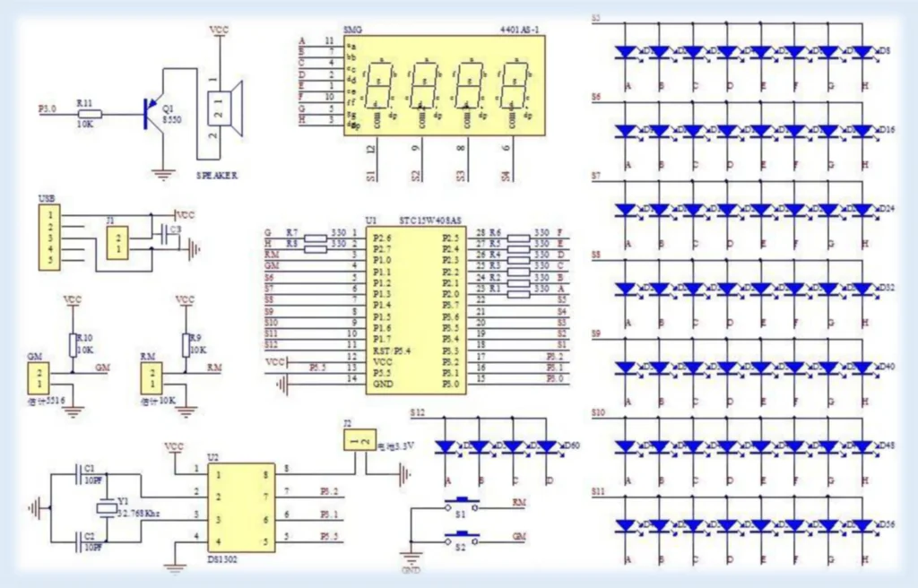 Принцип цепи:Использует микрокомпьютер с одним чипом в качестве основного управления, использует чип DS1302 для путешествий, чтобы обеспечить точный источник времени в пути, в сочетании с цифровой трубкойИ светодиодный индикатор показывает определенное значение времени. В сочетании с температурой светильник обнаружения интенсивность элемент, прилагаемый регулировки яркости и датчика температуры реализуютсяФункция тестирования. Микрокомпьютер с одним чипом контролирует ключи и сотрудничает с необходимыми функциями регулировки входного сигнала. Звук часов обрабатывается микрокомпьютером с одним чипом, а затем звуковой сигнал.Устройство выдано.