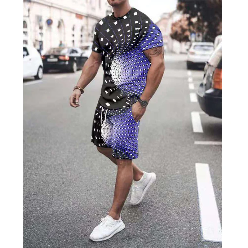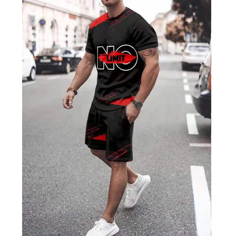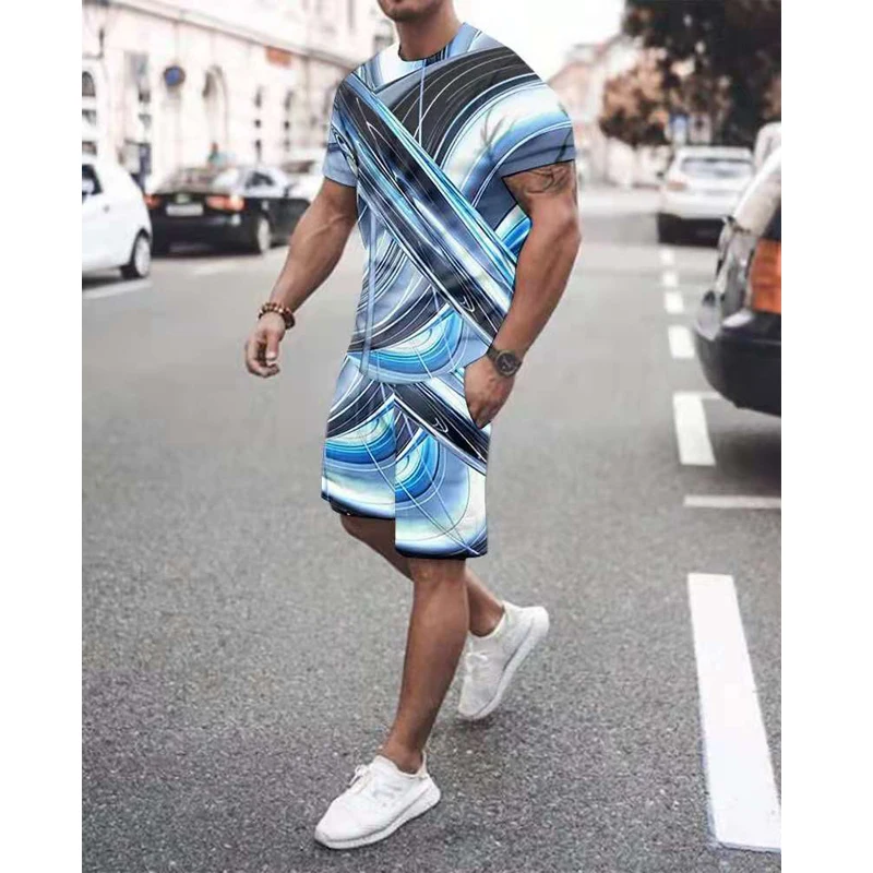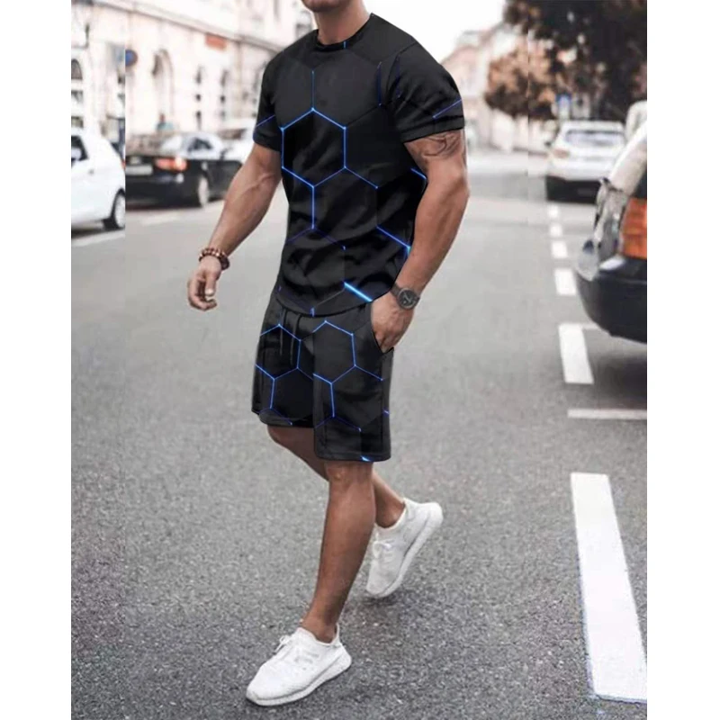 Футболка и шорты для бега мужские, комплект из двух предметов, свободный однотонный, с геометрическим принтом, модные спортивные костюмы, лето