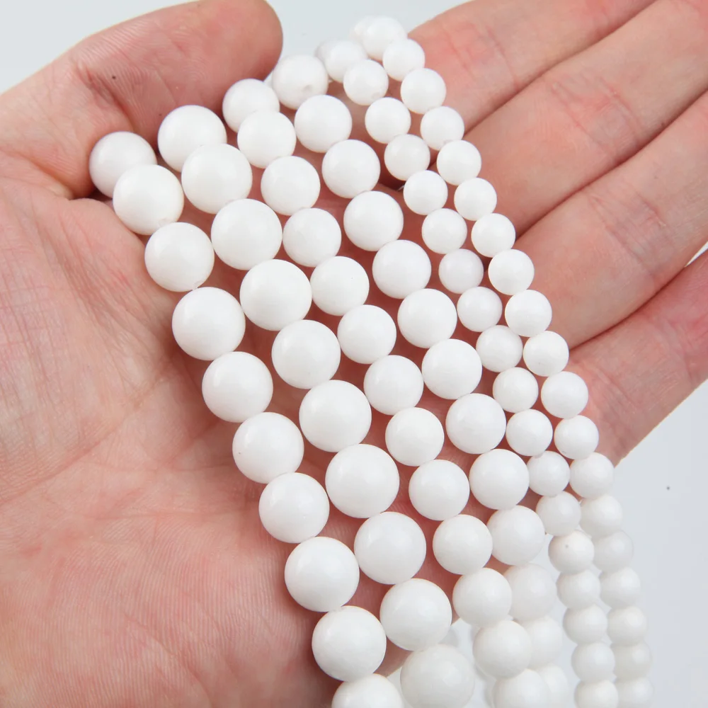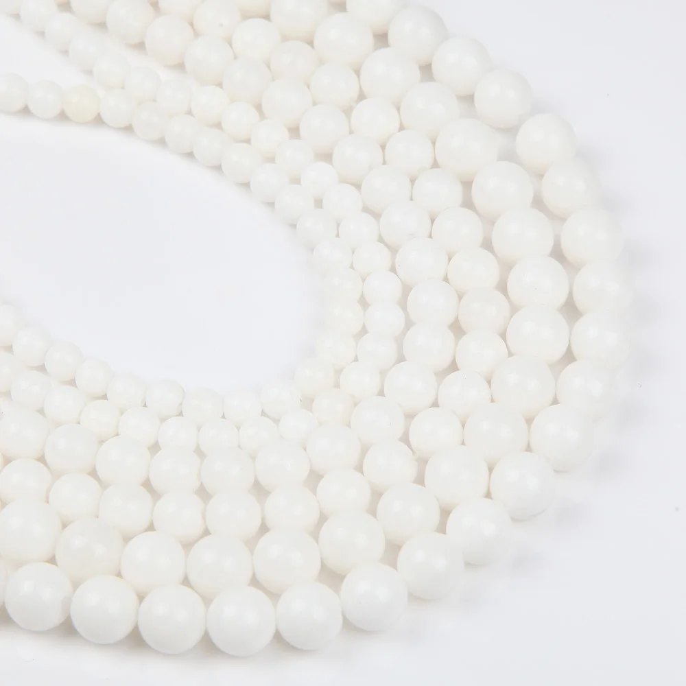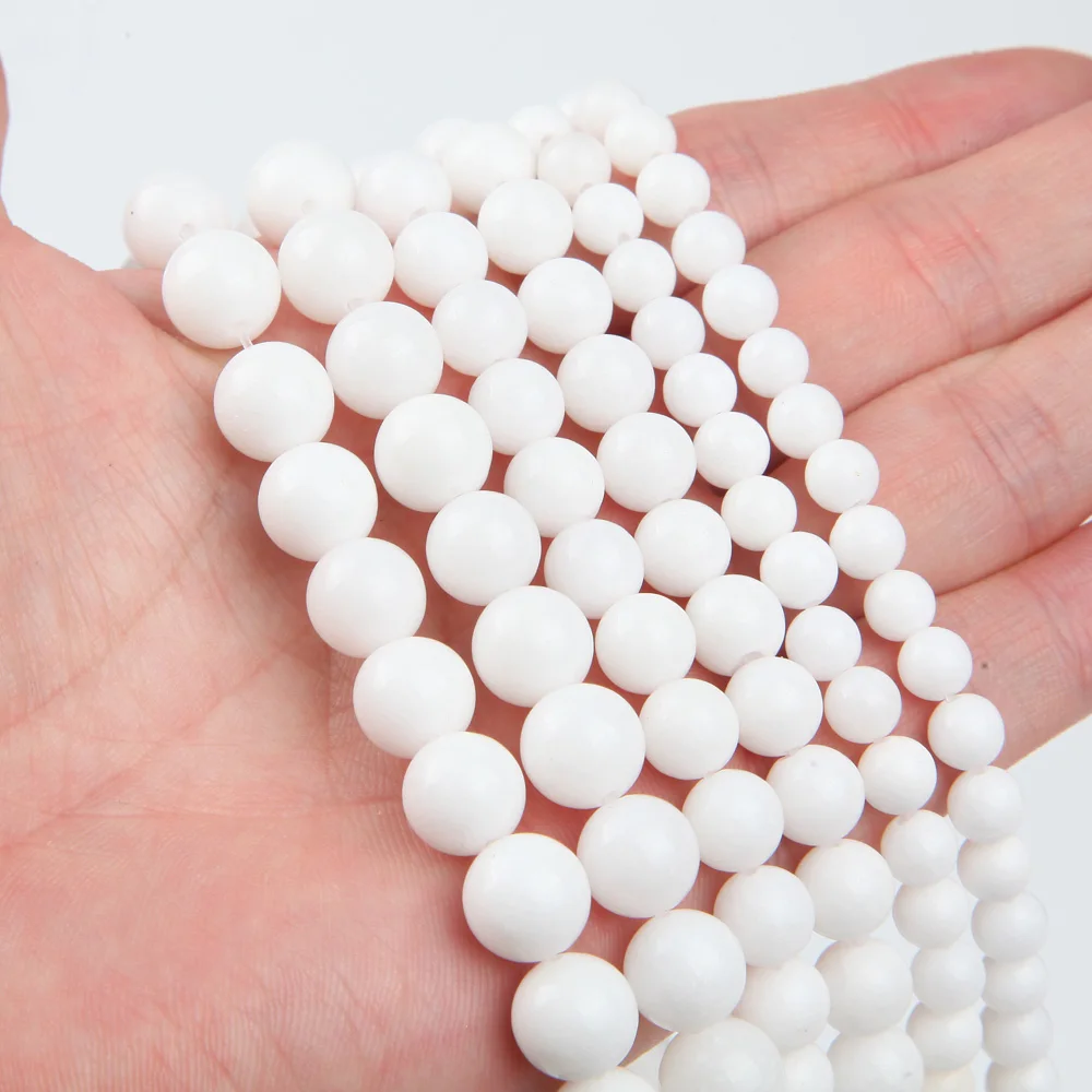 Белые бусины из натурального камня, круглые бусины 6, 8, 10 мм для изготовления украшений, ожерелий, поделок, браслетов, оптовая продажа, 15 дюймов