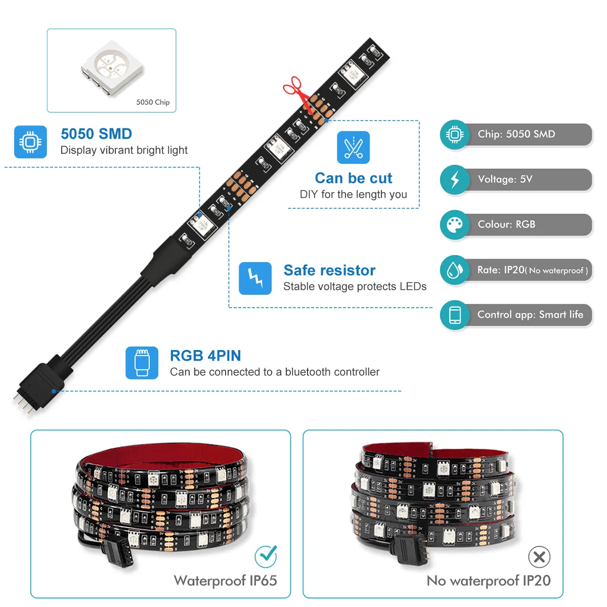 Водонепроницаемый Тип: IP20/IP65Тип светодиодный: SMD 5050Количество СВЕТОДИОДНЫЙ: 30 светодиодный s/mСветильник Цвет: разноцветный "Красный-зелёный-желтыйУгол луча: 120 градусовНапряжение: 5 В постоянного тока 1A(1 м),5 В 2A(2 м)Температура хранения. : -40 ~ 80 градусов ЦельсияРабочая температура. : -25 ~ 60 градусов Цельсия