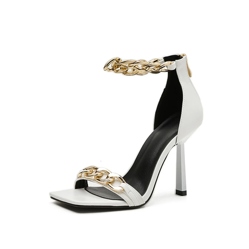 Женские босоножки на высоком каблуке-шпильке, с металлической цепоч...