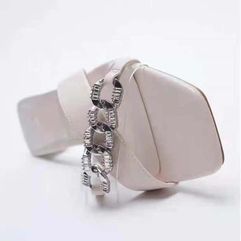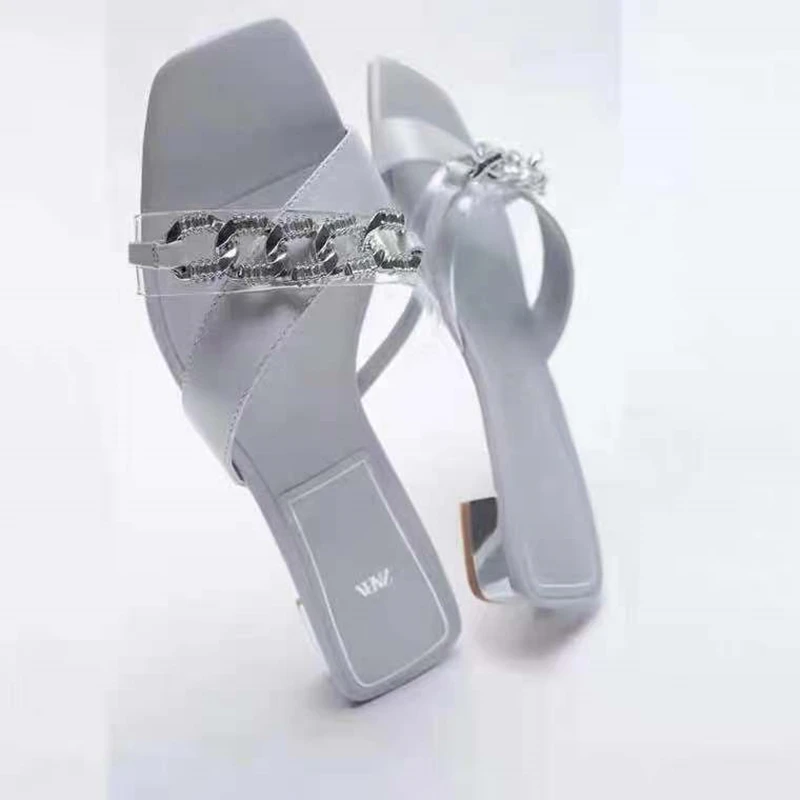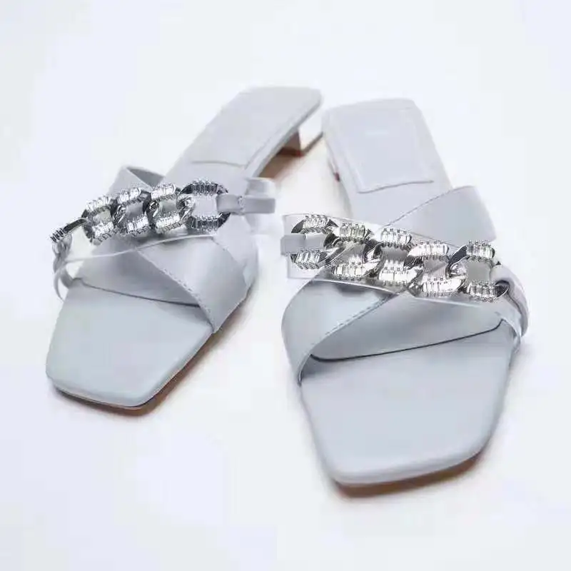 Женские сандалии на низком каблуке ZARZ, черные босоножки с квадратным носком и цепочкой, роскошные шлепанцы для лета, 2022