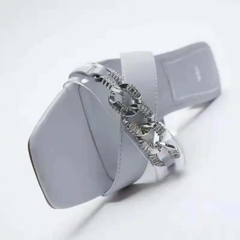 Женские сандалии на плоской подошве, прозрачные, с металлической це...