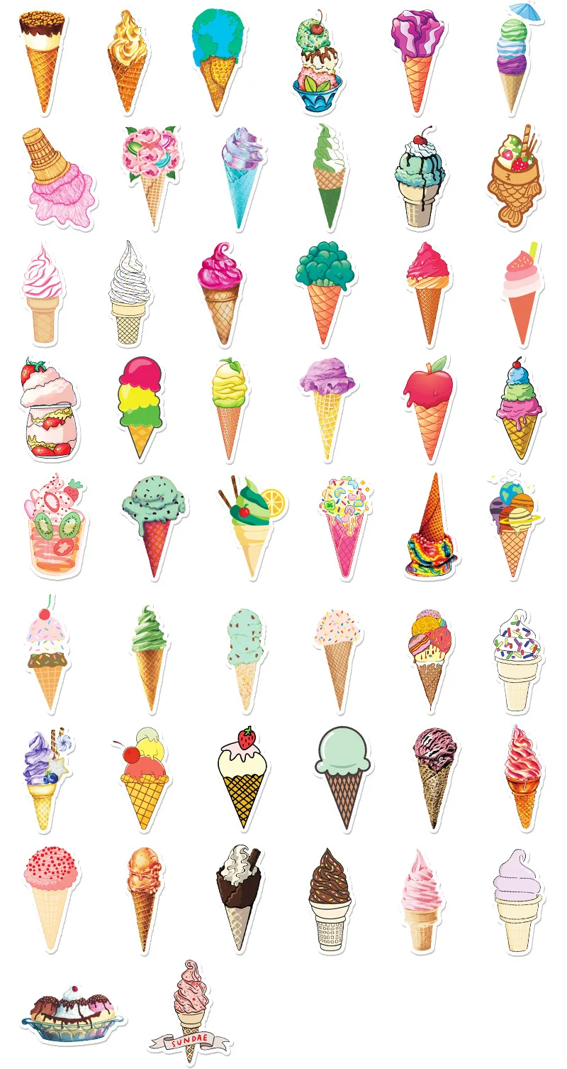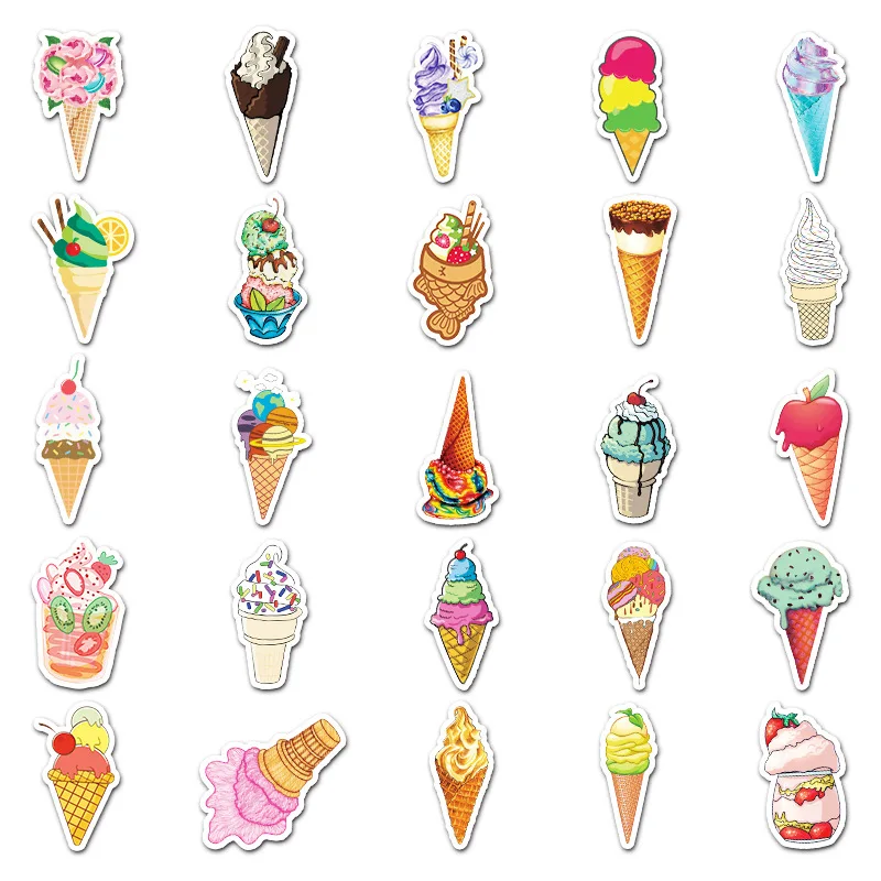 50 наклеек в виде мороженого для девочек, детские игрушки, наклейки сделай сам для ноутбука, холодильника, телефона, скейтборда