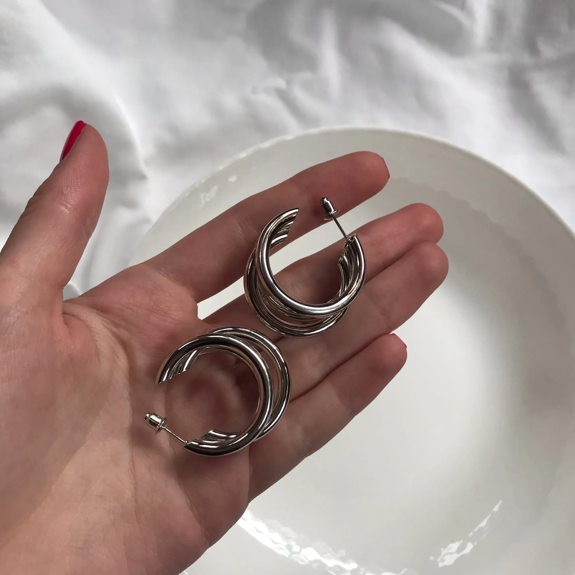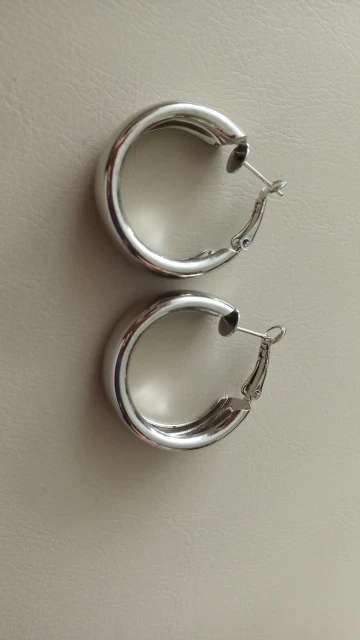 Серьги выглядят эффектно! Крупноватые и звенят при движениях) на обоих кружках с одной стороны заметны небольшие неровности, а вторая сторона идеальна, и верхняя прямоугольная часть тоже без изъянов! Блестят и пускают солнечных зайчиков! Спасибо, мне нравятся эти серьги