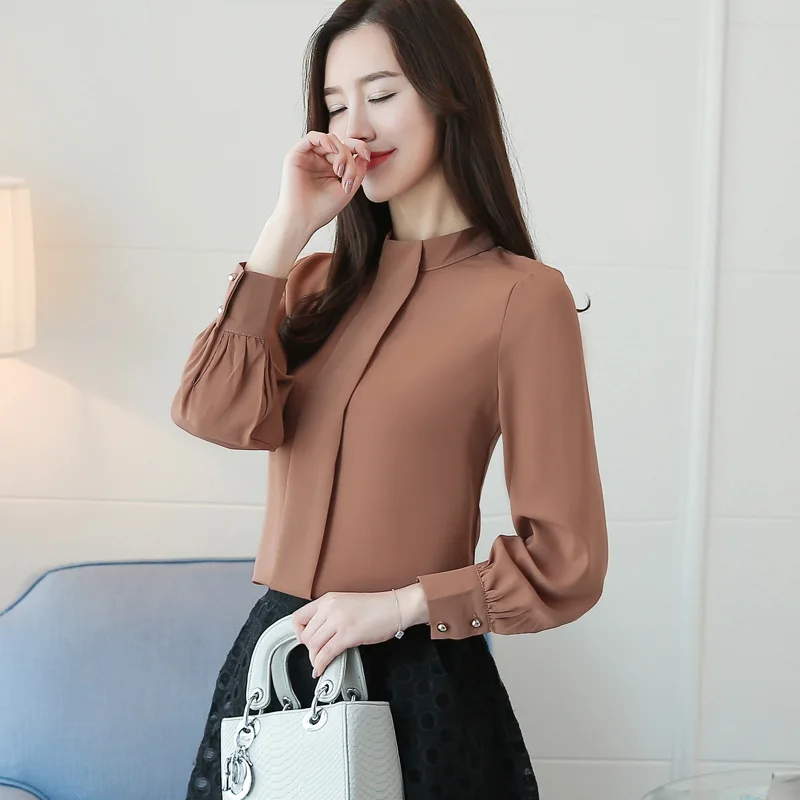 Женская шифоновая блузка с длинным рукавом, повседневная офисная блузка для работы, осень-весна 2021
