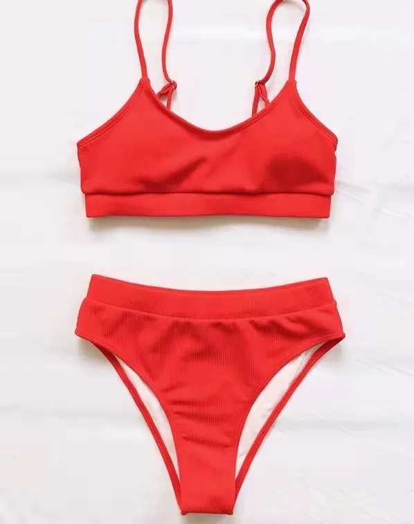 Женский купальник с высокой талией, большие бикини в рубчик, купаль...