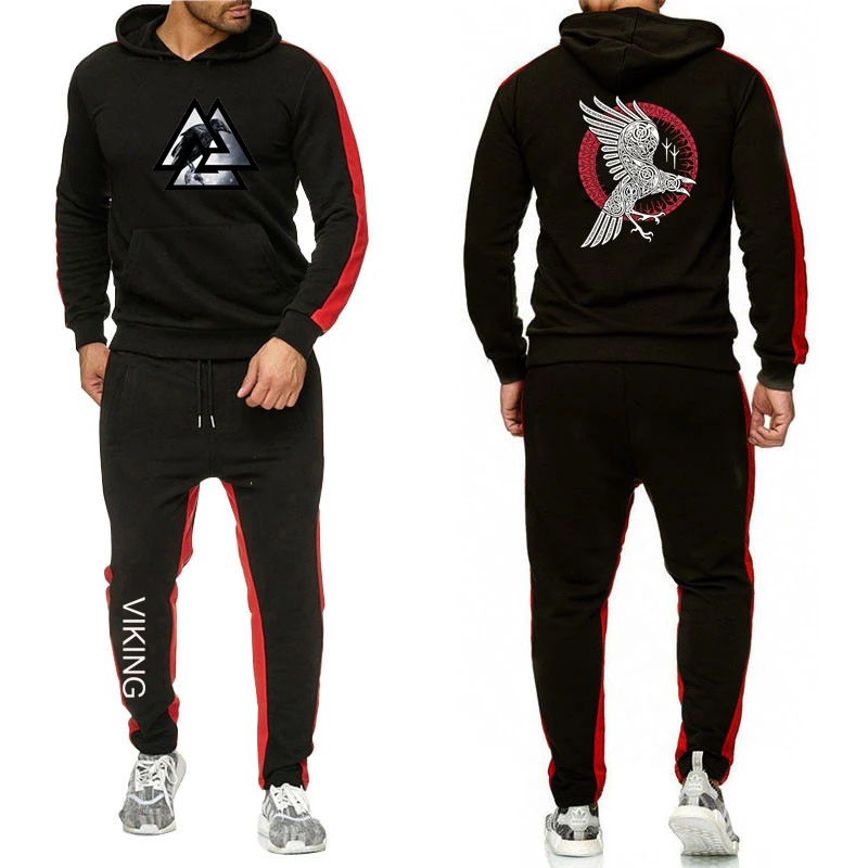 2020 мужские толстовки с вороном, легенда викингов, мужские хлопковые брюки, Повседневный пуловер, костюм, одежда