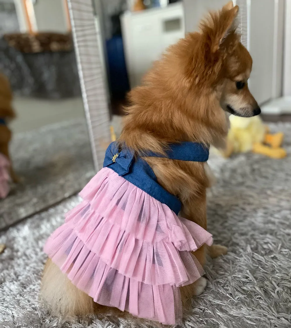 Весенне-летние новые платья для собак для маленьких собак полосатые подтяжки сетчатая юбка для питомцев Одежда для собак для маленьких собак Одежда для щенков для девочек