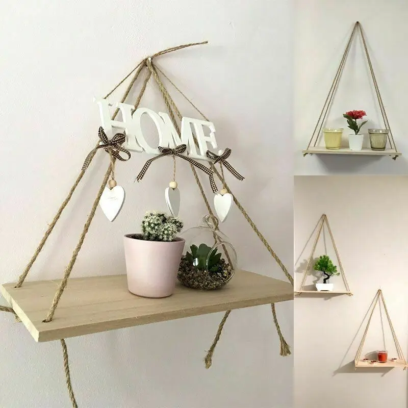 Цветочный горшок, поднос, плавающая веревка, качели, Настенное подвесное растение, деревянные подвесные полки для хранения, органайзер из джутовой веревки