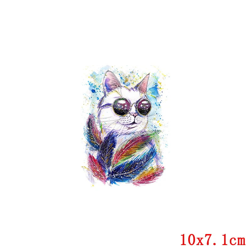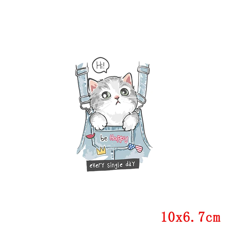 Термонаклейки для детской одежды с мультяшными животными, кошка, ед...