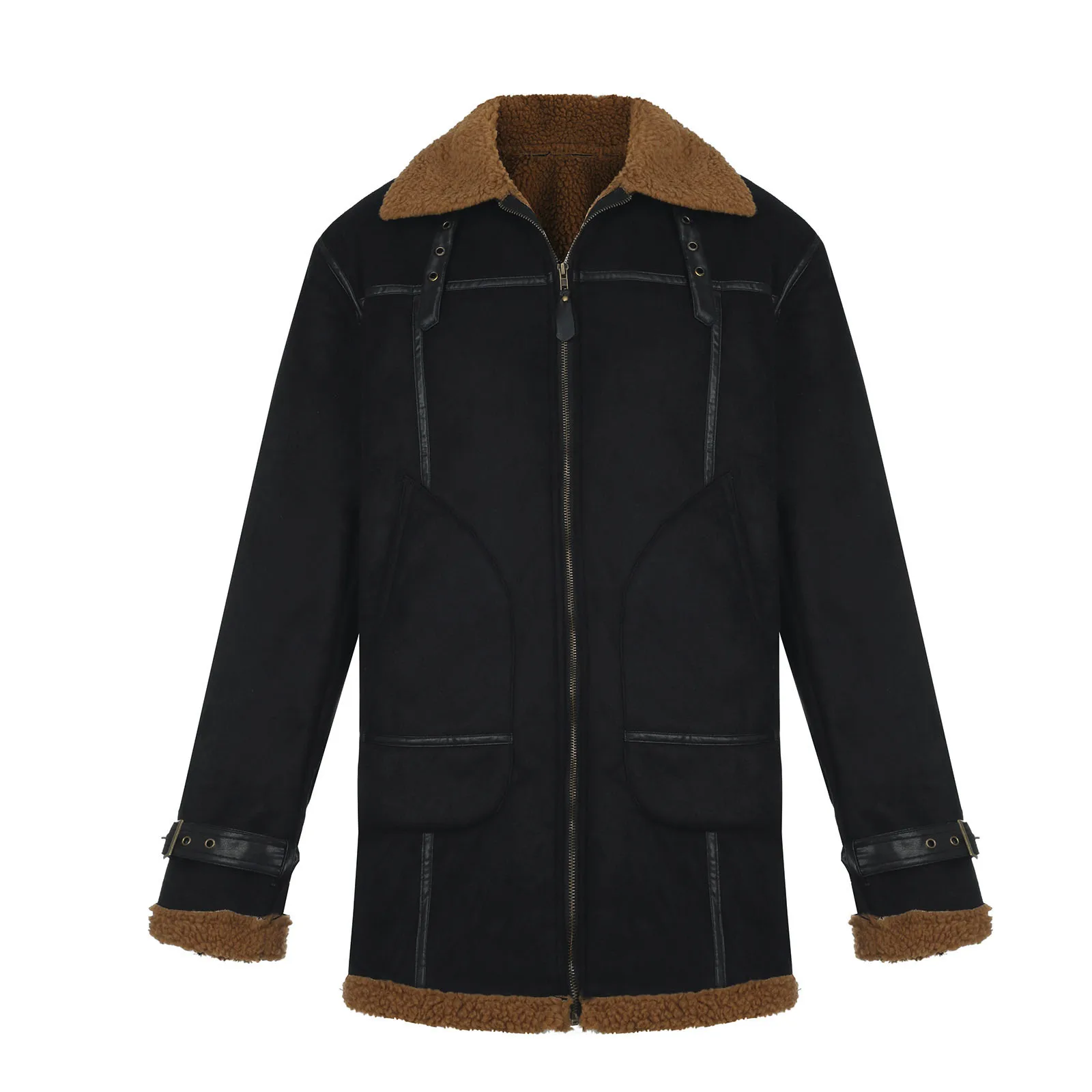 Мужская ветровка средней длины с отворотом, однотонное замшевое пальто
