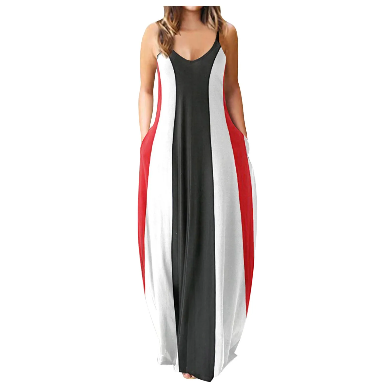 Длинное платье с подтяжками женское летнее платье с О-образным вырезом облегающее платье без рукавов с цветочным принтом для девочек размера плюс Пуловер Платья женская уличная одежда