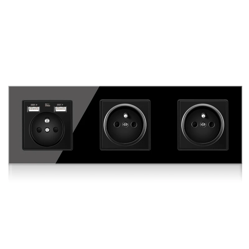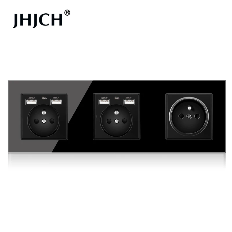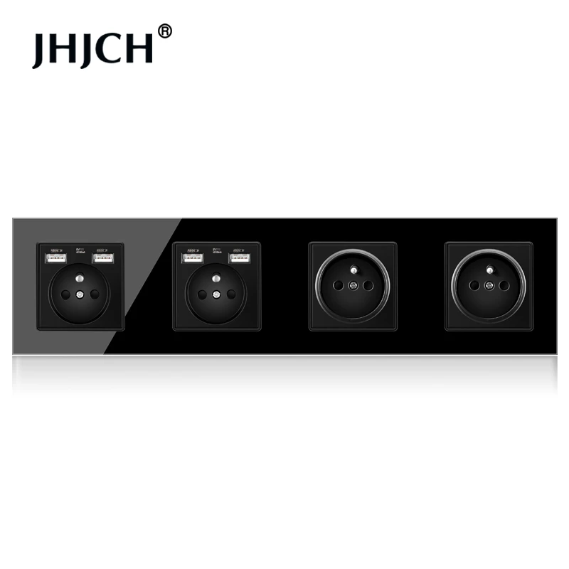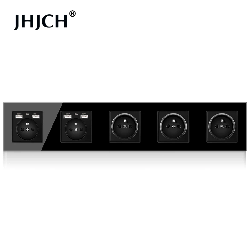 JHJCH настенная розетка из французского хрустального стекла, Заземление с дверью для защиты от детей, usb-розетка, входное напряжение 5 В, мА, AC100